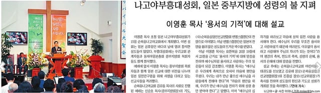 지난 부흥성회가 여의도순복음교회 순복음 뉴스 및 가족 신문에 보도 되었습니다.